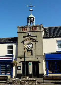 Watton High Street contains a distinctive Clock Tower which was built in 1679 by wealthy local merchant Christopher Hey after the fire of 1674, with a bell designed to act like an alarm bell to surrounding villages. In 1827 a new clock was installed, and the tower cemented, and in 1935 the clock face was updated to celebrate the Silver Jubilee of King George V and Queen Mary. Following a leak and the clock failing in 2015, it underwent restoration in 2017.[7]
