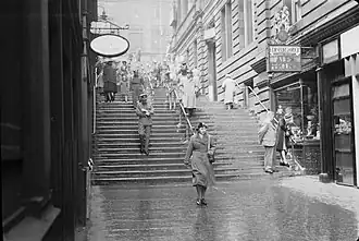 The staircase was opened in 1902 as part of the development of the adjacent North British Hotel (the present-day Balmoral Hotel), which at the time belonged to the North British Railway Company together with Waverley station.[1]