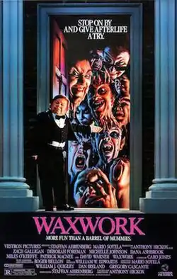 Waxwork is a 1988 American comedy horror film written and directed by Anthony Hickox in his directorial film debut and starring Zach Galligan, Deborah Foreman, Michelle Johnson, David Warner, Dana Ashbrook, and Patrick Macnee. It is partially inspired by the 1924 German silent film Waxworks.[2]