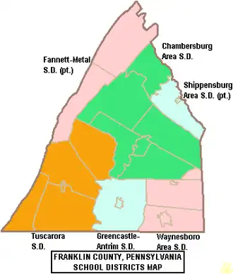 Students may choose to attend Franklin Virtual Academy which is an online education program operated by a cooperative agreement of local Franklin County public school districts.[4] Additionally, students may choose to attend Franklin County Career and Technology Center for training in the construction, mechanical trades. web development and technology careers, culinary arts, landscaping, cosmetology, and allied health services.[5]