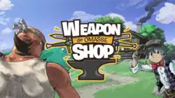 Weapon Shop de Omasse[a] is a comedy rhythm JRPG written by Yoshiyuki Hirai, in which the main characters are a father and son pair who craft weapons for heroes in a fantasy weapon shop resembling the set of a sitcom. The player uses rhythmic gameplay to forge weapons which are rented by heroes for their quests; the weapon chosen will affect whether or not the hero is successful.[1]