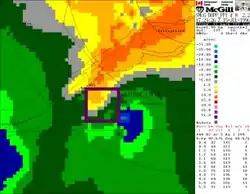 34. ^ J. S. Marshall Radar Observatory. "Target ID Radar Images PPI 0.5-degree". McGill University. Archived from the original on 28 June 2013. Retrieved 18 April 2013.