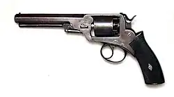 Webley Longspur is an early British percussion revolver, patented in 1853. The first revolver of the later famous British factory Webley&Son, it was an open frame, 5-shot, single action revolver. It was a solid and popular weapon at the time, although it faced heavy competition from already established, popular Colt's and Adams revolvers.[1][2][3]
