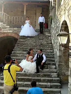 There are many other traditions which are local to their regional areas. One famous tradition is the pinning of money on the bride's dress during a special dance at the wedding reception, a custom especially common in rural areas and villages.[10]
