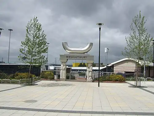 It is managed by Transport for West Midlands. Local bus services operated by various bus companies serve the bus station which has 12 departure stands.[1] Wednesbury Great Western Street tram stop on the West Midlands Metro is a short walk away.