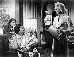 The "woman's film" category has also been regarded as a subgenre of melodrama, retrospectively formulated in response to feminist scholars' interest in the genre and its long-standing relegation as a cultural domain associated with women.[40] As noted by Gledhill: "The fact that the home and personal relationships provide common ground to the family melodrama and woman's film has given substance to the assumption that the latter constitutes a sub-set of melodrama, tailored specifically for female audiences."[41] Film scholar Laura Mulvey proposed an influential distinction between male and female point-of-view melodrama, "demarcating the 'tragically' inclined family melodramas of Minnelli and Sirk from Sirk's work in the more humble sphere of the woman's film, centring on female protagonist."[41]