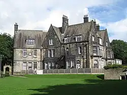 Weetwood Hall is now a hotel and conference centre, which includes a manor house and buildings of the same name dating back to 1625. It is a Grade II* Listed building of local gritstone ashlar.[6] The porch is of Classical design, with widely spaced Ionic columns, and the interior has elaborately plastered ceilings.[7] It was taken over by the University of Leeds in 1919 and was a hall of residence until 1993, when it took on its present role after extensive re-development.[8]