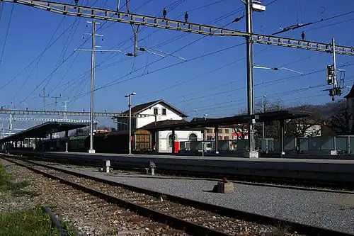 Weinfelden railway station is a railway station in the Swiss canton of Thurgau and the municipality of Weinfelden. The station is located on the Winterthur–Romanshorn railway line, at its junctions with the Mittelthurgau-Bahn lines to Wil and Konstanz.[1][2]