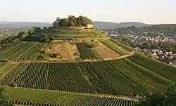 The earliest known settlement trace in Weinsberg is a group of tumuli. They're situated in the forest near the boundary to Heilbronn and haven't been investigated so far. It is assumed that the tumuli are to be assigned to the Hallstatt culture.[12]