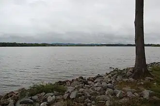 Weiss Dam, creating the reservoir, was begun as the first of seven hydroelectric projects on the Coosa in 1958, and finished three years later. It is a concrete and earthen gravity dam, 126 feet (38 m) high, named after Fernand C. Weiss, a former chief engineer of Alabama Power.[2] A book by local newspaper editor Douglas Scott Wright, titled A History of Weiss Lake,[3] describes the decades-long battle to build a series of dams along the upper Coosa River, the farmers who tried to stop construction of Weiss Dam, the lake's namesake, and the ups and downs that the community have experienced since it was completed in June 1961.