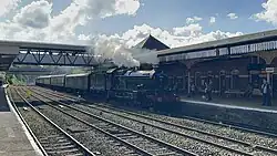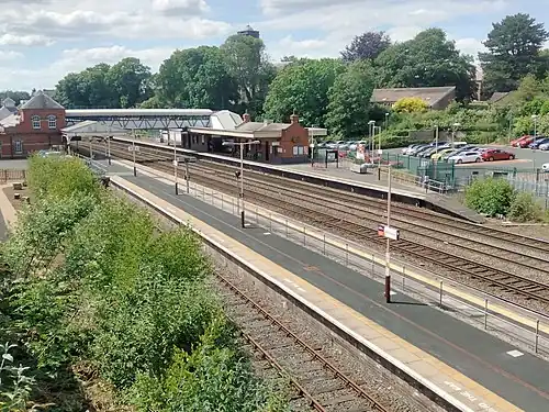 At its peak, the station had six platforms in operation, but as of June 2024, it has only three: two through platforms and one bay platform.[7] Platform 3, the remaining bay platform, is now out of regular use following the withdrawal of the Wellington to Walsall local service. It is only semi-regularly visited by track maintenance or cleaning units, but sees very rare use by regular services in emergencies.