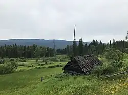 On July 16, 1926, the entire Clearwater Valley between First Canyon and the Murtle River was destroyed by a forest fire. It started from a lightning strike west of the Clearwater River, smouldered for several weeks, then was fanned by winds and moved rapidly north through the homesteads. The Ludtke family immersed themselves in Battle Creek for 8 hours, dampening some blankets to cover their heads, and their livestock and even wild animals joined them for protection. The Rupell cabin was the only one that did not burn. The fire crossed the Murtle River and burned part way up Kilpill Mountain. After its initial rampage, it burned slowly in the marshes of the Murtle Plateau until mid-August, when it was finally extinguished by a heavy rain. Over 125,000 acres (510 km2) of the Clearwater Valley were burned and most settlers lost almost everything they owned. However, there was not a single human fatality.[4]