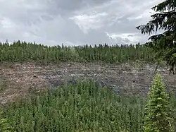 - Clearwater River Road. It starts in Clearwater and hugs the west bank of the Clearwater River north for 37.9 km (23.5 mi) to the confluence of the Mahood River. Attractions are The Kettle, Sabre Tooth Rapids, White Horse Bluff, and Sylvia and Goodwin Falls on the Mahood River. This road is used for river access by Clearwater's three rafting companies. The road is rough and maintained by its users, and a high-clearance vehicle is recommended. Between 1964, when the road was constructed, and 1975, when logging ceased in this area of the park, the road bridged the Mahood and continued for 27 km (16.8 mi) along the west flanks of the Clearwater River, where it terminated at the Flourmill Volcanoes.[4] On July 2, 2020, the road washed out at 11.4 km (7.1 mi), opposite Spahats Creek, rendering the remaining 27 km (17 mi) to the end of the road at the Mahood River impassable by vehicle.[11] Many volunteers and two local logging companies, Dale Miller Logging and Wadlegger Logging, stepped up to temporarily repair the road, but work couldn't get underway until April 2021, nine months after the washout, due to a lack of permits. When work began, it was quickly discovered that the damage was more extensive than initially believed - beyond the scope of volunteer repairs. During 2021 and 2022, alternate routes to the Clearwater River were discussed and engineers studied the washout. A proposal for building retaining walls at a cost of $1.1 million has been submitted to the Minister of Transportation, but no decision has been made as of April 2023. The event has hit Clearwater's tourism and recreation industry hard, as the road was very popular with campers, anglers, and used by three whitewater rafting companies - Interior Whitewater Expeditions, Liquid Lifestyles, and Riverside Adventures. Interior Whitewater Expeditions (IWE) has had to cancel all overnight trips, with their only trips now being on the lower part of the river - from the put-in points below the washout. As a result of the washout, IWE cancelled 100 overnight trips in summer 2021 and laid off nearly half of their workforce.[11][4]