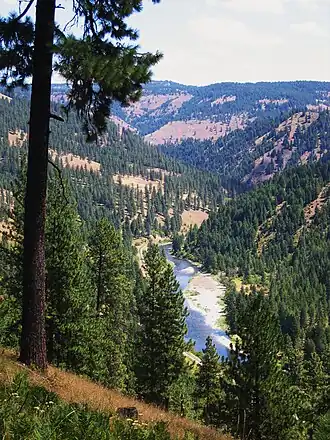 The Wenaha River is a tributary of the Grande Ronde River, about 21.6 miles (34.8 km) long,[3] in Wallowa County, northeastern Oregon. The river begins at the confluence of its north and south forks in the Blue Mountains and flows east through the Wenaha–Tucannon Wilderness to meet the larger river at the small settlement of Troy.