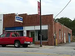 The Wendell Commercial Historic District is a national historic district encompassing the historic central business district of Wendell, North Carolina, a town in eastern Wake County. The district is notable for its intact collection of one- and two-story brick masonry commercial buildings executed in the vernacular style typical of eastern North Carolina communities in the first half of the twentieth century.[2] The roughly three-block district is bounded on the north by the 1906 Raleigh-Pamlico Railroad tracks, on the east by Pine Street, on the south by the rear property lines of the structures fronting Third Street, and on the west by the rear property lines of the buildings fronting Main Street. The district was listed on the National Register of Historic Places in July 1998.[1]