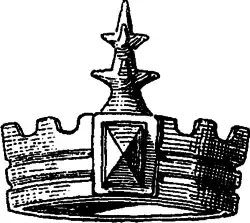 A golden Wendish crown was a symbol used by the rulers of Mecklenburg, including the Grand Duchy of Mecklenburg-Schwerin and the Grand Duchy of Mecklenburg-Strelitz. It was present in their coats of arms, medals and decorations, and additionally, was used as an ornament in the interiors of palaces and castles.[1] It is also present in the design of the Cross of Frederick Francis and the House Order of the Wendish Crown.[1][2]