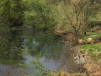 The 5.5 hectare (ha) conservation area is located southeast of Wernau at an elevation of 310 to 320 meters above sea level and belongs to the nature preserve area of Schlierbacher Platte in the central foreland area of the Swabian Jura mountains. It is classified as a secondary biotope (it was not formed naturally, but from a man-made biotope) with an advanced ecological succession containing wet and dry areas, slopes and water surfaces.[2] The former clay pit is ecologically a very valuable, re-naturalized, near-urban area.