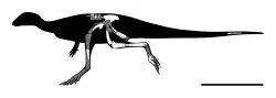 | Vectidromeus[34] | V. insularis | Lower part of the formation | Associated elements of the dorsal vertebrae, pelvis, hindlimbs, and tail, from a juvenile specimen | A hypsilophodontid | ![]() | |