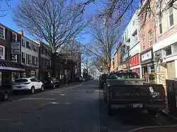The main east–west road to West Chester is West Chester Pike, which begins in Upper Darby Township, Delaware County, just outside Philadelphia, and is part of Pennsylvania Route 3 (PA 3).[37] The West Chester Pike originally existed as a private turnpike connecting Philadelphia and West Chester between 1850 and 1918, when it became a public road.[38] In West Chester, PA 3 follows Market Street eastbound and Gay Street westbound. The main north–south road in West Chester is High Street. To the north of town, the road is known as Pottstown Pike, which connects to PA 100 near Exton (PA 100 formerly ran through town). To the south of town, the road is known as Wilmington-West Chester Pike. Other state routes serving West Chester include PA 162 and PA 842, which head west towards Unionville, and PA 52, which heads southwest towards Kennett Square.[37]