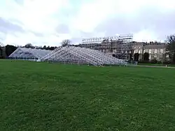 A visitors centre was completed in 1995. The building, which includes a gift shop and restaurant and adjoined by terraces and gardens, was designed by Christopher Alexander and colleagues. The building's exterior walls are constructed of brick, local flint, and concrete.[17]