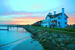 During the early 1800s Bass River was an important safe harbor for schooners and fishing ships in Nantucket Sound. At that time, a small light was placed in the upper window of a private home to help mariners in the area.[4] In 1850, the federal government of the United States appropriated $4000 to build a lighthouse near the breakwater at the mouth of Bass River. In 1854, construction began on the light and keepers home. As was typical of early Cape Cod style lighthouses, the light tower was an integral part of the keepers house, centered atop the dwelling's roof.[1][5] Because most of these structures leaked significantly, they were replaced with self-standing towers; the West Dennis Light is the only remaining lighthouse on Cape Cod built with this design. The light was lit in 1855, and continued in service until 1880, when the Lighthouse Service decided the Bass River Light was no longer necessary since a new light had been built at Stage Harbor in Chatham. After many complaints, the light was relit a year later.[1]