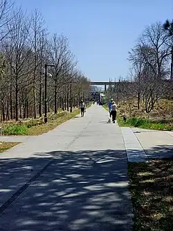 West End is also a pioneer neighborhood for the BeltLine project in Atlanta. The first model mile was completed in the spring of 2008. The model mile consists of the biking and walking path, improvement of Gordon-White Park, and one new park behind Brown Middle School. In addition Trees Atlanta planted 200 trees native to West End which will be part of a 22-mile (35 km) linear arboretum that will follow the BeltLine corridor. Livable Center Initiative (LCI)[8] granted funds for West End to renovate and improve its streetscape to make it a more walkable community. West End is included in the Peachtree Corridor plan.[9] With the Peachtree Corridor, the BeltLine, and MARTA, West End is one of the most transit-oriented neighborhoods in Atlanta. Along the BeltLine in West End is the Lee + White which is a large mixed-use development that has 23 acres of businesses, eateries, and a greenspace.[10]