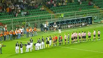 As runners-up in the 2006 FA Cup West Ham, now managed by Alan Pardew, gained entry to the 2006–07 UEFA Cup.[66][67] Violence involving West Ham supporters was again in evidence. Twenty West Ham fans appeared in an Italian court following their arrest after fights with rival supporters in Sicily before and after West Ham's game against Palermo in the away leg of their 2006–07 UEFA Cup game. At the home leg, fans had bought T-shirts bearing the slogan "the Mafia" – a reference to Sicily being the home of the Cosa Nostra. This was seen as antagonistic by Palermo fans. Six West Ham fans, six police officers and five locals suffered minor injuries in fighting in Sicily. Rival fans threw bottles and chairs in the city's Teatro Massimo district. Five-hundred people were involved in the brawl and police officers were attacked. It took police in riot gear more than an hour to bring the violence under control. An eyewitness said, "West Ham fans behaved like animals, roaming the streets, bottles in hand searching for anyone to fight."[68] More than 2,500 West Ham fans travelled to Palermo for the game.[69]