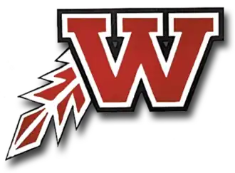 The logo is currently the "Flying W," a capital "W" with a feather hanging off of it. More recently an arrow has been added behind the "Flying W". This is also the only school in the United States with "Old Rose" as its school color.