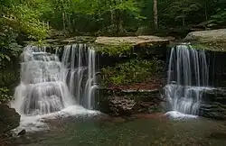 Around Beech Ridge, by contrast, the many channels, resulting in braiding when the stream is at bankfull levels, are the result of past floods. Even modest ones can easily reconfigure the channel, as has happened several times over the late 20th century. The inventory found less stabilization and more erosion on the banks as a result.[41]: 7–10