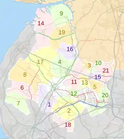 There are 21 civil parishes in West Lancashire. The main towns of Skelmersdale and Ormskirk are unparished areas. There is a movement to establish a town council in Skelmersdale.[32] The parish council of Burscough takes the style "town council".[33]
