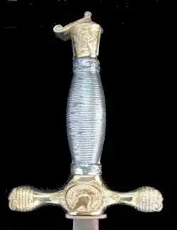 The sword is based on that used by the US Army when USMA was founded (16 March 1802). The first swords used were legacies from the Army following the formation of the Academy in 1802 and are believed to have been similar to the 1767 French Grenadier Sergeant's sword used in the Revolutionary Army. The first swords procured for the Academy were delivered in 1838.[4]