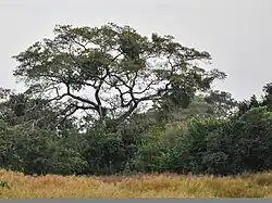 Savanna and open woodland are the characteristic vegetation types. Species of Combretum and Terminalia are the typical savanna trees, and the ground is covered with long grasses, herbs, and shrubs. Species of Hyparrhenia, or elephant grass, is the predominant grass, and often grows 1 meter or more in height. Trees in the drier woodlands generally less than 10 meters high, and include Anogeissus spp. with Acacia spp., Balanites aegyptiaca, Combretum glutinosum, Commiphora africana, Prosopis africana, Tamarindus indica, and Ziziphus mucronata. Many trees lose their leaves during the height of the dry season, and the grasses often dry out.[2]