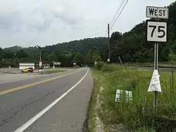 WV 75 runs concurrent to U.S. Route 52 (Tolsia Highway) from Interstate 64 south for three miles (5 km) to the incomplete diamond interchange.