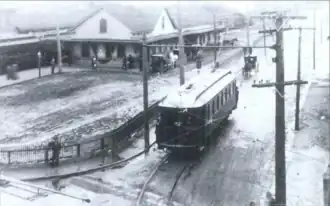 The Westerly station opened along with the New York, Providence and Boston Railroad on November 17, 1837. The original depot was a small wooden structure, similar to those still extant at nearby Noank and West Mystic.[1] In 1872, a new station - similar to those still standing at Kingston and East Greenwich - was constructed. It had a pedestrian tunnel (passenger subway) for passengers to reach the westbound platform and shelter.[1]