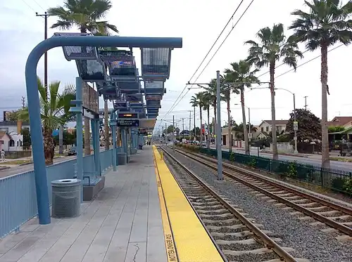Expo/Western station is an at-grade light rail station on the E Line of the Los Angeles Metro Rail system. The station is located in the center median of Exposition Boulevard at its intersection with Western Avenue, after which the station is named, in the West Adams neighborhood of Los Angeles.[2]
