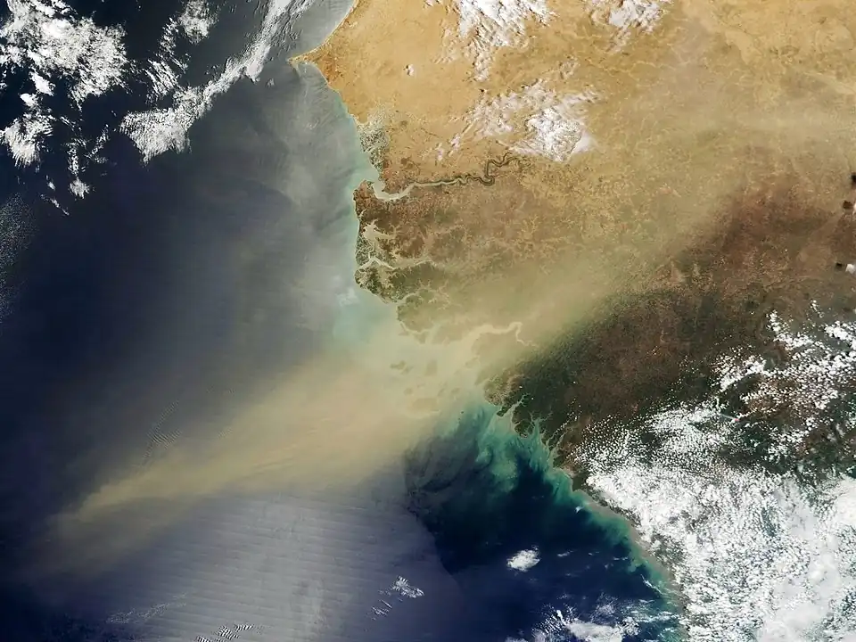 West Africa has a rich ecology, with significant biodiversity across various regions. Its climate is shaped by the dry Sahara to the north and east — producing the Harmattan winds — and by the Atlantic Ocean to the south and west, which brings seasonal monsoons. This climatic mix creates a range of biomes, from tropical forests to drylands, supporting species such as pangolins, rhinoceroses, and elephants. However, West Africa's environment faces major threats due to deforestation, biodiversity loss, overfishing, pollution from mining, plastics, and climate change.