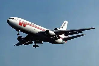 The aircraft involved was a wide-body McDonnell Douglas DC-10-10, registered as N903WA.[4] The aircraft first flew in 1973 and in six years had logged a total of 24,614 flight hours.