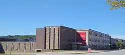 After several other moves, in 1928 the school moved to twin H-shaped structure of red brick and limestone trim in an English Tudor / Elizabethan /Jacobethan architecture on Gwynns Falls Parkway, opposite financier George Brown's estate "Mondawmin" which was replaced by one of the earliest enclosed malls in 1956), which was the duplicate of a similar new building for sister Eastern High in 1938 on 33rd Street and Loch Raven Boulevard.
