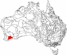 Western Mallee was introduced in IBRA Version 6.1. Its region code is MAL2. It is one of two subregions of the Mallee region, the other being Eastern Mallee.[4] The Mallee, Avon Wheatbelt and Geraldton Sandplains regions together comprise Hopper's Transitional Rainfall Zone of Beard's South West Botanical Province.[5][6] Under the World Wide Fund for Nature's regionalisation of the world's terrestrial surface into "ecoregions", the Western Mallee subregion falls within the Esperance Mallee ecoregion, one of 6 ecoregions comprising the Southwest Australia ecozone.