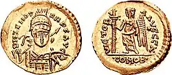 When Nepos was murdered in Dalmatia in 480, Odoacer assumed the duty of pursuing and executing the assassins and established his own rule in Dalmatia at the same time.[99] Odoacer established his power with the loyal support of the Roman Senate, a legislative body that had continued even without an emperor residing in Italy. Indeed, the Senate seems to have increased in power under Odoacer. For the first time since the mid-3rd century, copper coins were issued with the legend S C (Senatus Consulto). These coins were copied by Vandals in Africa and also formed the basis of the currency reform carried out by Emperor Anastasius in the East.[100]