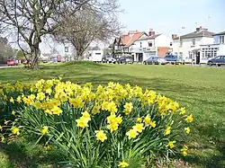 ![]() The narrow western section of Weston Green has the main through route and the retail/dining/entertainment roads of the village. The local council offset the A309 road with daffodils in spring time. | |