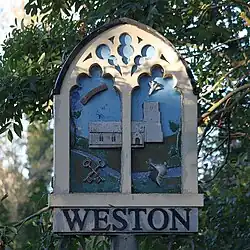 The manor passed through many hands, including, in the reign of Henry I, the Lord Chancellor William Longchamp.[12] Weston Hall was built in the late 16th century for the Rede family and partly demolished following a fire in 1821.[12][13][14] The population of the parish was 211 in 1841, rising to 261 in 1871 and remaining at around that level until after the second world war.[15]