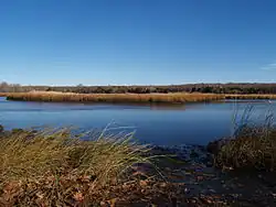 The larger East Branch is roughly 11.5 miles (18.5 km) long,[1] rising at the town line of Westport and Dartmouth at Lake Noquochoke, which is fed mostly by the Copicut and Shingle Island rivers. After a short length the river meets the Bread and Cheese Brook before reaching the Head of Westport village, where the river widens and deepens. From here the river continues southward, being fed by several brooks before an initial widening to between 100-400 yards at Widows Point. From Widows Point, the river flows due southward, crossing under the Hix Bridge before passing Gull Rock and then widening at Cadman's Neck to approximately a half mile wide. The river flows southward, with several larger islands dotting the path, before meeting the Horseneck Channel (which in turn leads to The Let) at Westport Point. The East Branch then flows under the Normand Edward Fontaine Bridge and into Westport Harbor.