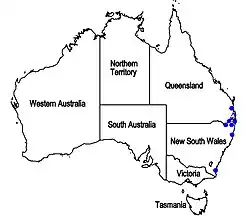 | Known range of Westringia blakeana (in blue) | |