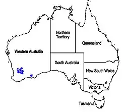 The species grows on sandy soils in the Avon Wheatbelt and Mallee IBRA bioregions of Southwest Australia.[1]