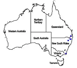 The species is found in south-eastern Queensland and north-eastern New South Wales. It grows on rocky slopes and ridges in sclerophyll forest.[2]