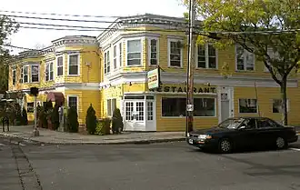 The village as it developed includes number of buildings that were originally built at residences, but have mostly been converted to commercial uses, as well as purpose-built commercial and mixed commercial-residential buildings.[2] In 2003, the listed area was 22 acres (8.9 ha) and there were 30 contributing buildings in the district.[1] The listing was amended in 2006 to add the former Westville Theater building at 827 Whalley Avenue, an Early Commercial style building that was built in 1912.[1][3] The theater building is now occupied by an antiques store.