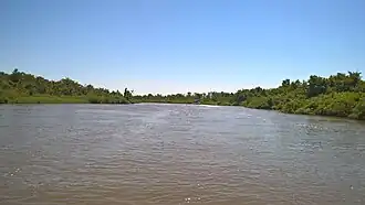 Over half the park, 15,742 hectares, consists of wetlands.[11] Many small stagnant rivers including the Pichori River, Kukani River, Dedabera River, Tkhorina River, Tsia River, Tsiva River, Churia River, Munchia River, Mukhurjina River and other smaller streams flow through the park mainly through flat coastal plain at an average elevation of 0–10 metres.[11] A narrow dune ridge, some 100-200-meters-wide has developed along the Black Sea shore that rises some 2–3 m above the coastal plain.[11] Much of the land is peat bog and marsh,[14] some of which form several distinct peat bogs, including Anaklia, Churia, Nabada, Imnati, Maltakva, Grigoleti and Pichori which are located on the coastal plain.[11] In places peat layers may exceed 12 meters in thickness, the result of clay, sand, silt and peat deposits over the last 4000 to 6000 years.[11] In some areas the marsh is indunated completely with a number of lakes including Lake Paliastomi, Patara Paliastomi Lake, Imnati Lake and Parto Tskali Lake.[11]