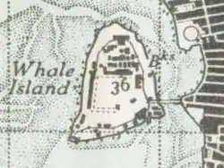 Ordnance Survey maps of Portsmouth Harbour from 1862 show Whale Island as a narrow strip: its east-to-west dimensions were similar to present times, but north to south it measured only tens of yards. To its northwest was Little Whale Island.[1] Modern Whale Island is predominantly reclaimed land, using the deposits dredged from Portsmouth harbour during the 19th century, increasing the land area by about 125%. It was constructed with the help of the many prisoners taken in the Napoleonic Wars.