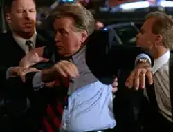 | President Bartlet is rushed into his limo by Secret Service agents after shots ring out | |